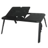 Notebook desk. 1. Wide application, can not only used as a cooler, but also as a laptop/reading table in family and school, in an office and a car travel. 2. Easy for operation, set up in seconds Super thin, very light, extra-strong and sturdy, max.loading 25kgs 3. Foldable in desk and legs, a small in volume 4. Structure suitable for any sized laptop, legs adjustable to any comfortable angles when in use 5. Description: Foldable laptop table with fans Product size: 285*316*36 mm Net Weight: 1.49 kgs